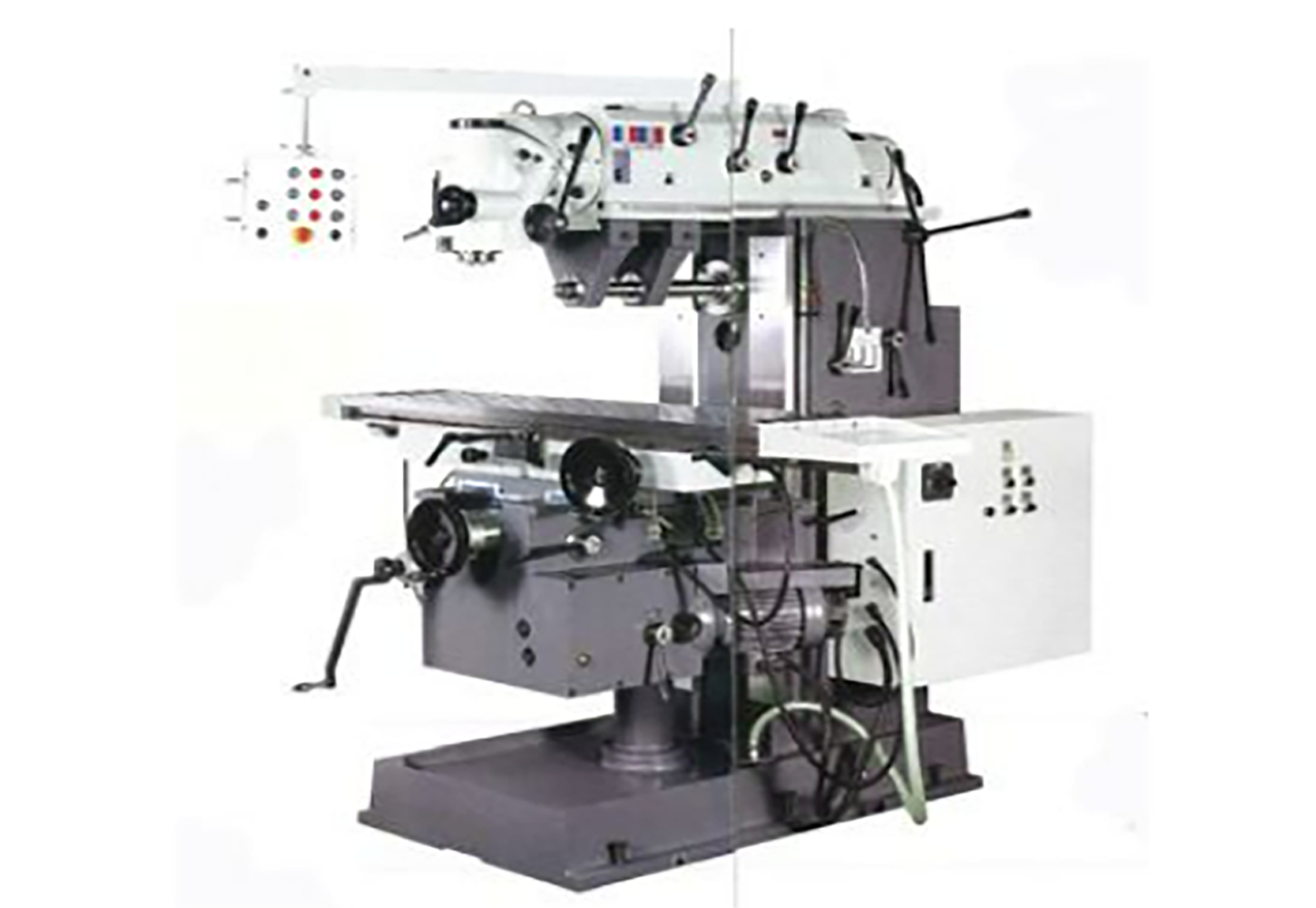 Has both a vertical and horizontal milling spindle. 59″ Long x 13.7″ wide table, 12 step speeds on both vertical and horizontal spindles. ISO-40 spindle taper vertical and horizontal, 5.5 Hp vertical spindle motor and 7.5 Hp horizontal spindle motor, overarm control panel, “Turcite B” on Y axes to ensure smooth and durable operation Available through Commonwealth Industrial—your Clausing sales and service partner.