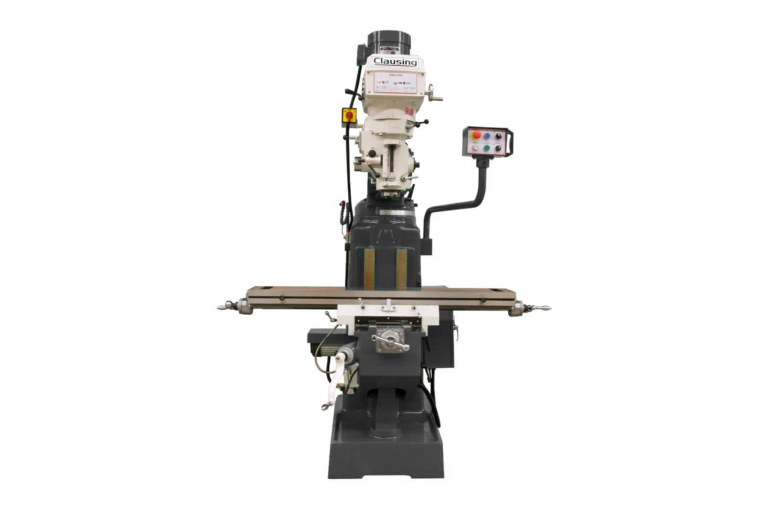Clausing Knee Mill is driven by variable speed sheave pulleys using a V-belt from motor to a manual variable speed assembly that adjusts the infinitely variable speed range by turning a dial. High/Low range shift mechanism provides the correct torque for your manufacturing application. One of the heaviest knee mills in its class, and designed to deliver all the power, precision, and versatility you will need to handle milling jobs in your manufacturing facility.
