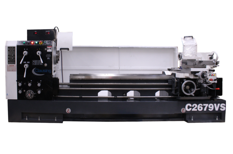26.7” Swing over bed, Variable Speed Gap Bed Engine Lathe, 25 Hp Spindle motor, 79” between centers, 16” Swing over the cross slide, 8 – 900 RPM Range, 2 Speed, 4.125” Spindle Bore, A2-11 spindle nose, 3.94” Tailstock quill diameter with 8 taper, Inch/Metric threading with various pitch settings, 230/460 Volts, 3 Phase. Available through Commonwealth Industrial—your Clausing sales and service partner.