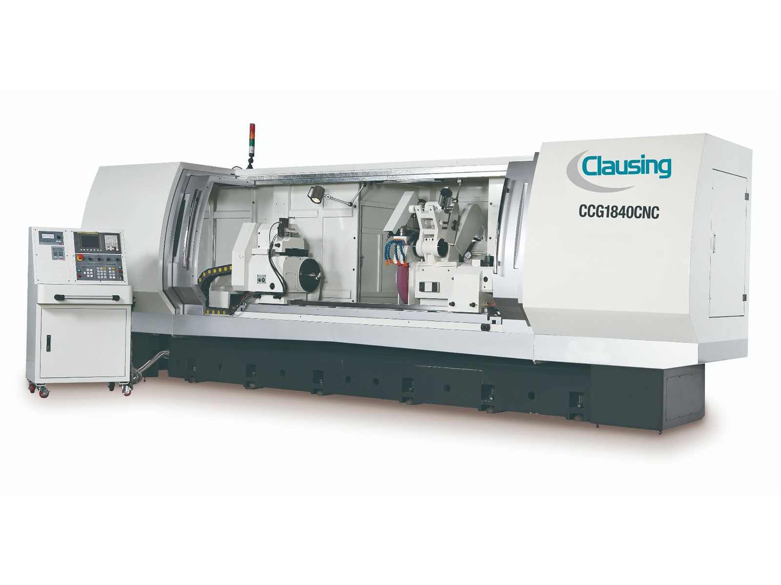 Clausing CNC 18 x 40 Precision Cylinder Grinder, Fanuc CNC control, ball screw operated traverse moving, inverter speed control work spindle head 0-350 rpm, automatic feed, 15 Hp Wheel Spindle drive motor, 230 or 460 volts, 3 ph Available through Commonwealth Industrial—your Clausing sales and service partner.