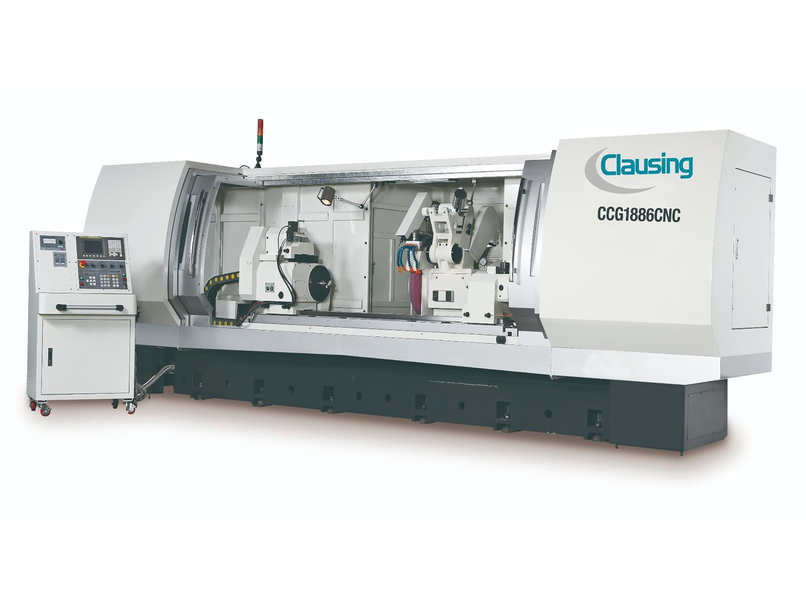 Clausing CNC 18 x 86 Precision Cylinder Grinder, Fanuc CNC control, ball screw operated traverse moving, inverter speed control work spindle head 0-350 rpm, automatic feed, 15 Hp Wheel Spindle drive motor, 230 or 460 volts, 3 ph Available through Commonwealth Industrial—your Clausing sales and service partner.