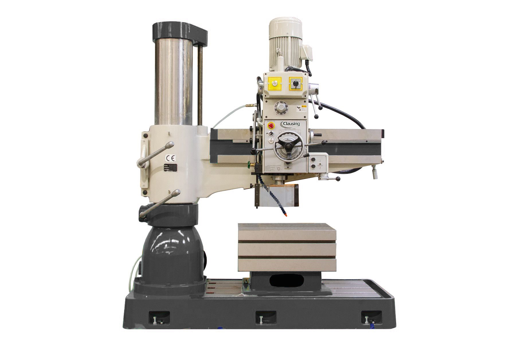 43.3” Arm, 25.1 x 20.4 x 16.5 Box Table, 1.65” Drilling Capacity Steel, 1” Tapping Capacity Steel, 3 Hp 2-Speed Spindle Motor, W/CE Electrics, Spindle Guard, 12 – Speed Geared Head, 44 to 1500 rpm Spindle Speed, Self-Contained Coolant System, 230/460 Volts 3 Phase Available through Commonwealth Industrial—your Clausing sales and service partner.
