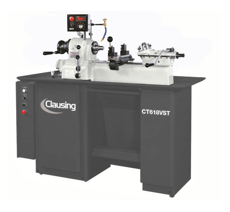 Clausing 9” Swing over bed, Toolroom Second Operation Lathe, Six station turret in place of tailstock, 50-4000 RPM Spindle Speeds, 3 Hp Spindle Motor, 1-1/4” Through Hole Diameter, 230/460 Volts, 3 Phase Available through Commonwealth Industrial—your Clausing sales and service partner.
