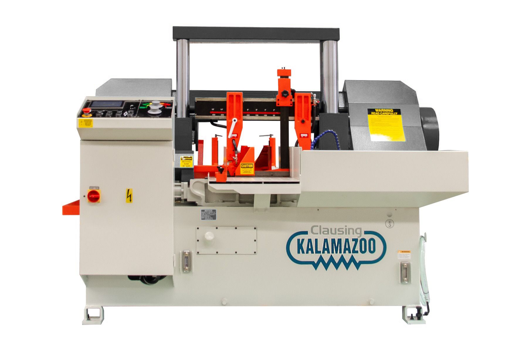 Clausing Kalamazoo Double Column Automatic Horizontal Bandsaw 15” x 12.6” Max Rectangular Capacity, 12.6” Round Capacity, 49 to 262 SFPM Blade Speed, 5 Hp Drive Motor, 230 volts 3 Phase Available through Commonwealth Industrial—your Clausing sales and service partner.