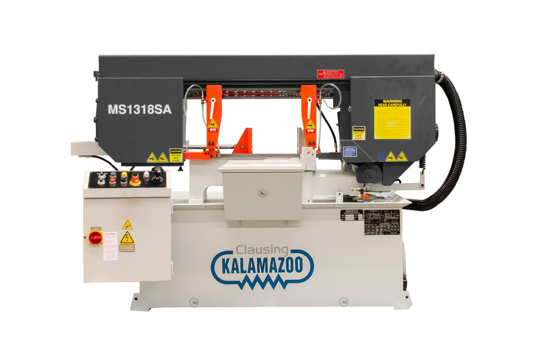 Clausing Kalamazoo Semi-Automatic Horizontal Miter Bandsaw 11” x 17.3” Max Rectangular Capacity, 13” Round Capacity, Variable Sheave Pulley Drive, SFPM 98 to 328 Blade Speed, 3 Hp drive motor, 230/460 Volts 3 Phase. Available through Commonwealth Industrial—your Clausing sales and service partner.